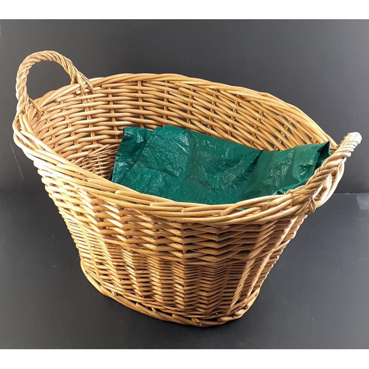 A robust wicker weave twin handled log basket, 56cm across and in good clean useable condition.