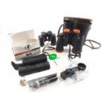 TEONAR by Swift 16 x 50 Binoculars in case, with one other set and a modern pocket telescope.