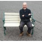 A good quality refurbished wrought iron ended bench in green and green and yellow