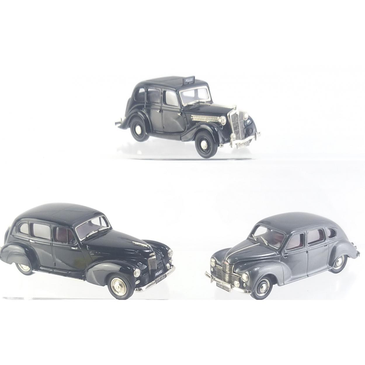 Three heavy white metal quality diecast models. IPV.34 Humber Supersnipe, IPV.14 1939/1948 Wolseley 18/85 Series III and a Lansdowne 1953 Jowett Javelin. Superb quality models in good condition.