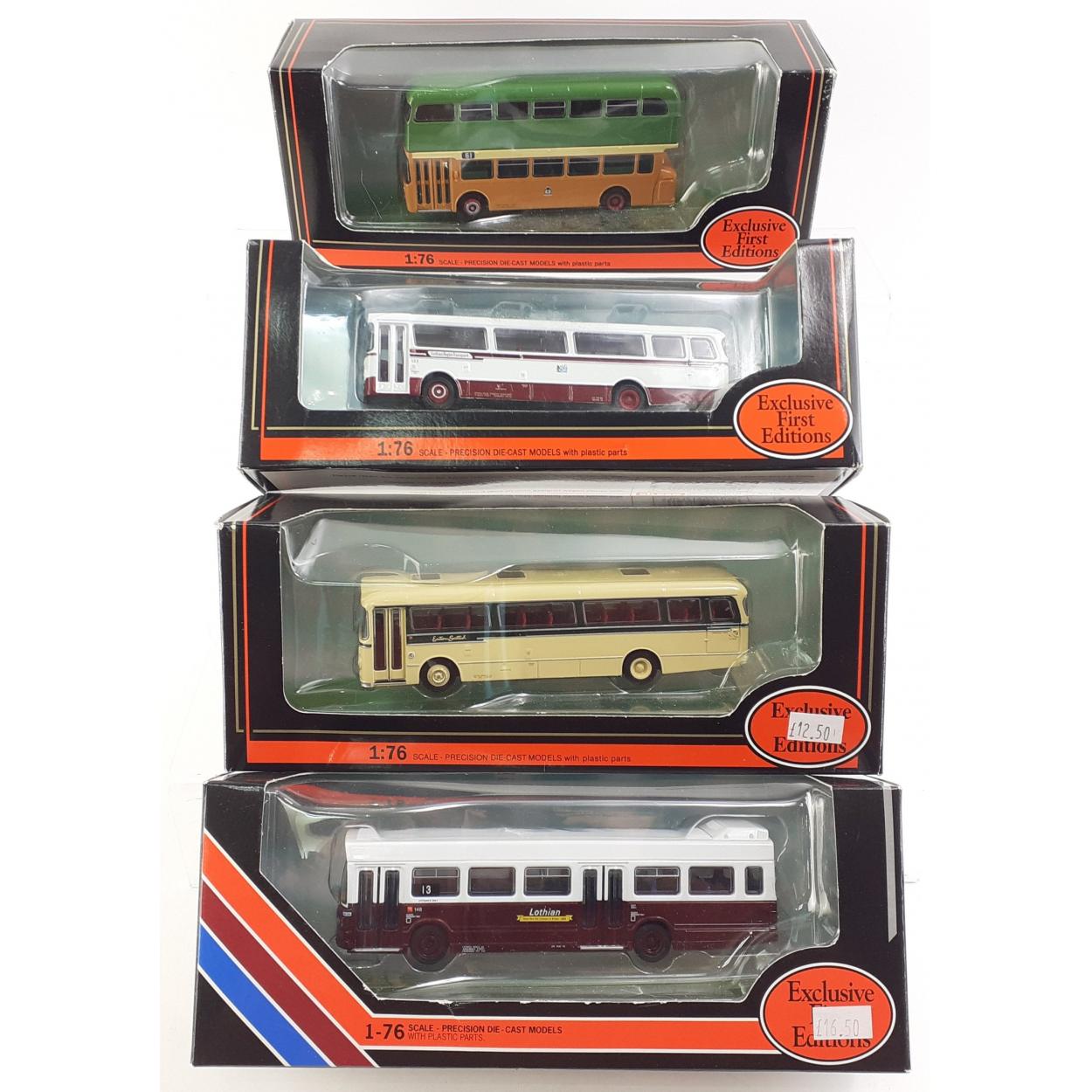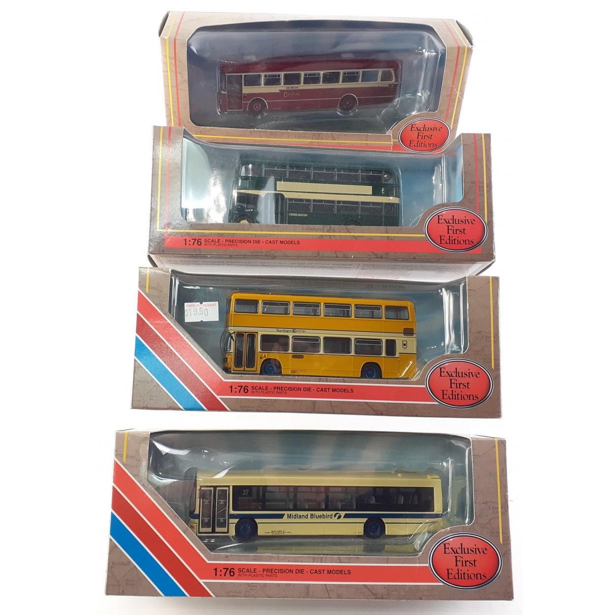Four EFE Exclusive First editions Diecast 1:76 Buses. Includes 14201, 20503, 24302, 27204. All boxed in good condition.