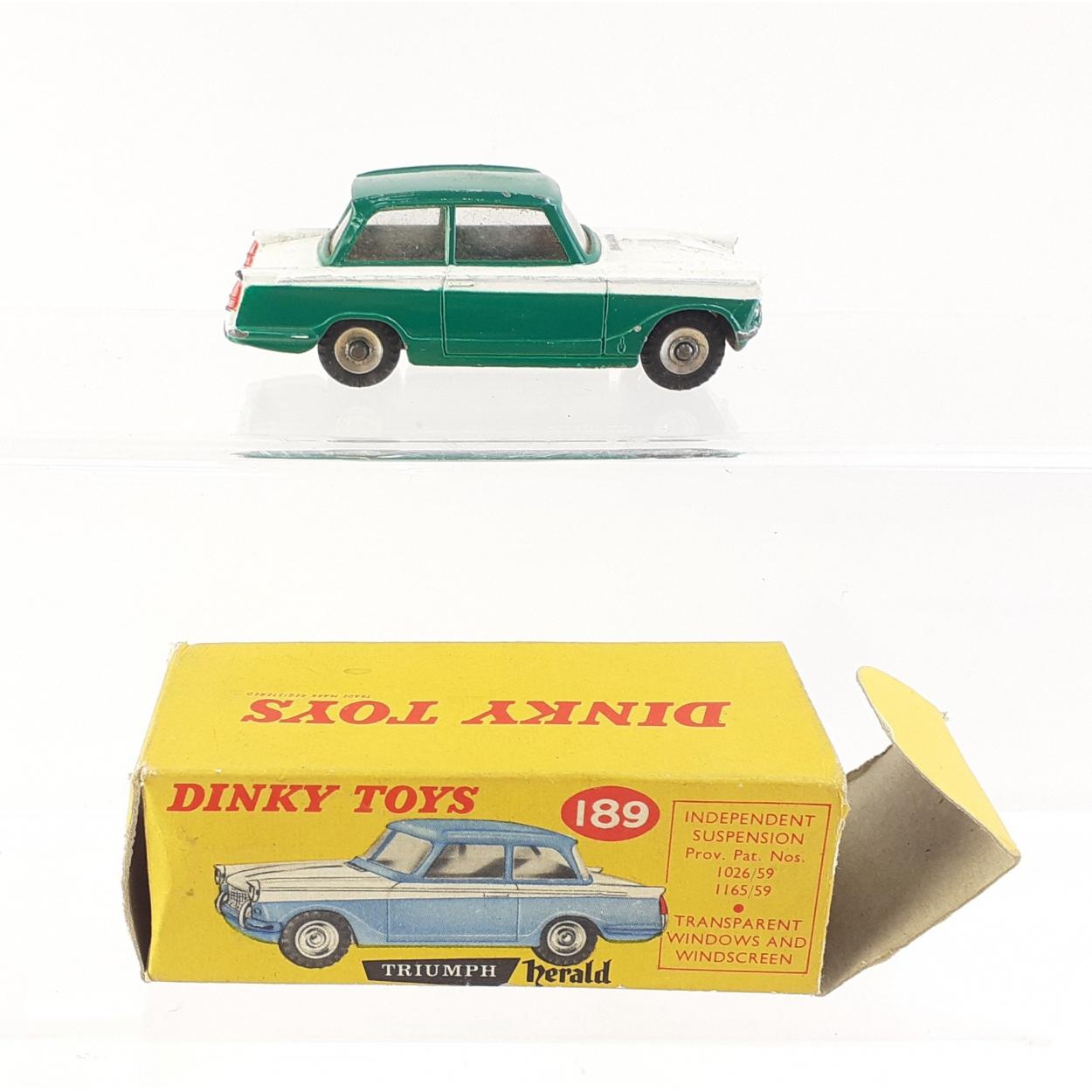 DINKY 189 Triumph Herald, boxed in green and cream finish. Minor blemished noted to paintwork, box with detached flap