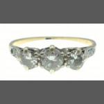 DIAMONDS ARE A GIRLS BEST FRIEND! 18ct yellow gold stamped with PLAT stamped diamond set in platinum ring, with three SUBSTANTIAL large set DIAMONDS(tested) - a beautiful 'sparkle' - ring size M - gross weight