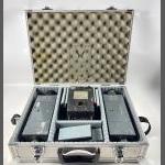 A Pair of WWII Era G45 Gun Cameras including pilots control box in modern case. Colour co-ordinated for port and starboard gun mounts. Very rare to find with the control box. These were owned by an ex RAF armourer Sergeant who worked at MAEE (Marine Aircraft Experimental Establishment) in Helensburgh during the war developing anti U Boat measures and was involved in development of Barnes Wallis Highball Dambusters Bouncing Bomb. These cameras were used on flying boats and reputedly on float fitted Spitfires. One of two pairs the other being donated to the National Museum of Flight at East Fortune.