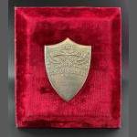 Crufts Dog Show Award 1902. New Century Shield. Attractive approx plaque mounted and red velvet display stand. Won by Mr A.E. Butters. Brace 1902 dimensions 20cm x 17cm approx