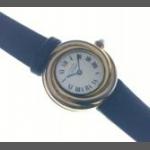 FABULOUS Must de Cartier PL 25586 Vermeil gold plated ladies wrist watch - QUARTZ movement - ARGENT 925 CARTIER 1970's Must De Trinity Quartz 2735 - with black leather strap - slight wear on the gold plate top and bottom of the surface of the watch front, requires a new strap pin, no scratches on the watch glass face or the body of the watch - 2.7cm diameter approx - no paperwork or box -