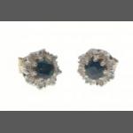 DIAMONDS ARE FOREVER! A STUNNING pair of unmarked 'yellow metal' diamond(tested) and sapphire earrings, eight diamonds surrounding a beautiful blue SAPPHIRE - gross weight 2.72g approx