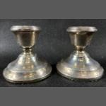 A Pair of SILVER Hallmarked Birmingham 1926 candle holders gross weight 198g - dimensions 6.5cm diameter of the bases x 6cm height approx