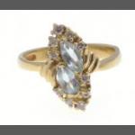 DIAMONDS ARE A GIRLS BEST FRIEND! 750 (18ct) stamped yellow gold with 10 small diamonds(tested) with two central blue topaz style oval stones weight gross 3.75g approx ring size M