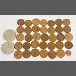 WHY NOT START A COIN COLLECTION OF YOUR VERY OWN - A lot to include, 34 half old pennies circa 1950's , a 1971 Half Pence, a 1953 Five Shilling large coin, and a commemorative 1965 CHURCHILL Crown