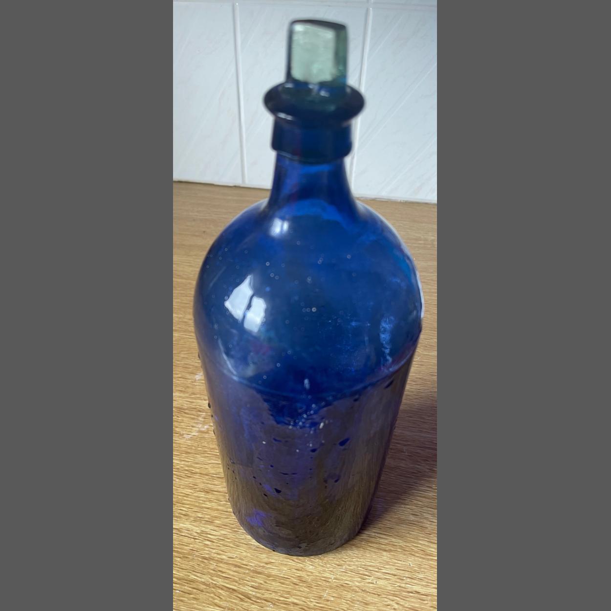 ANTIQUE APOTHECARY LIDDED JAR A large blue apothecary jar with glass lid - 30cm tall approx / good condition no chips or cracks or signs of damage repair