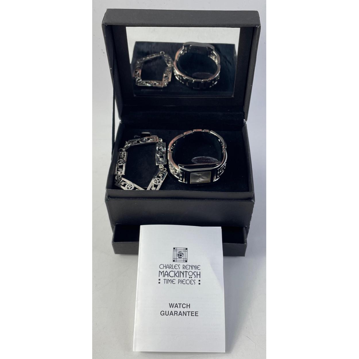 (VNS)A CHARLES RENNIE MACKINTOSH inspired boxed white metal wrist watch with bracelet