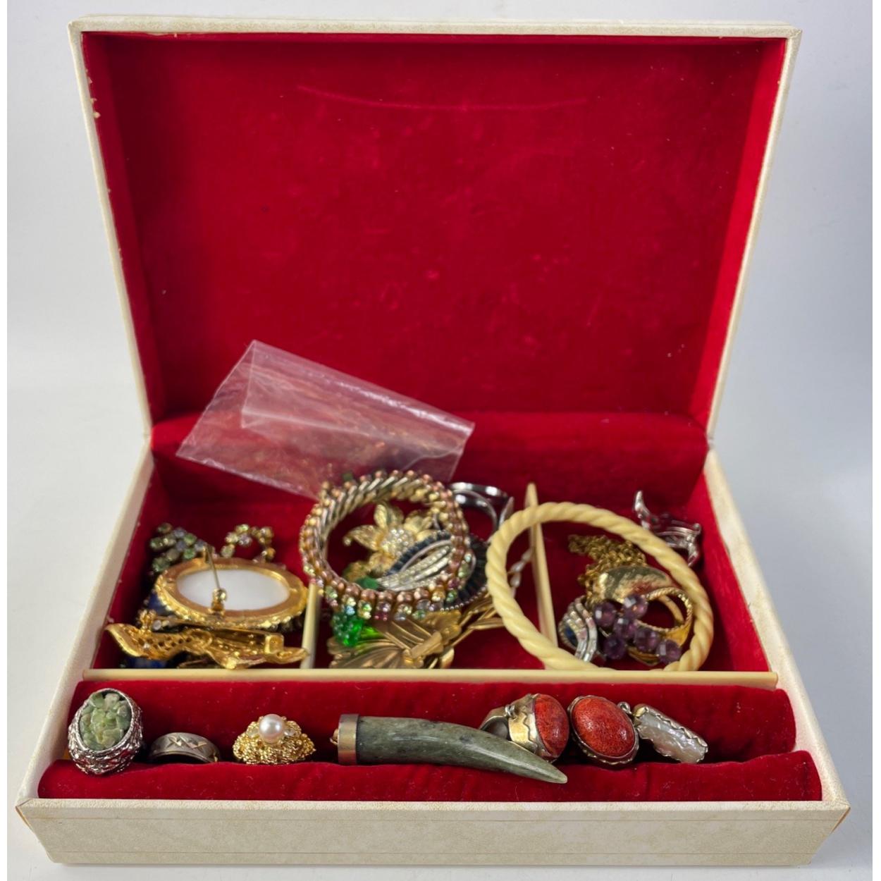 Lovely lot of bijouterie and costume jewellery in vintage box. Super group of bling in good condition.