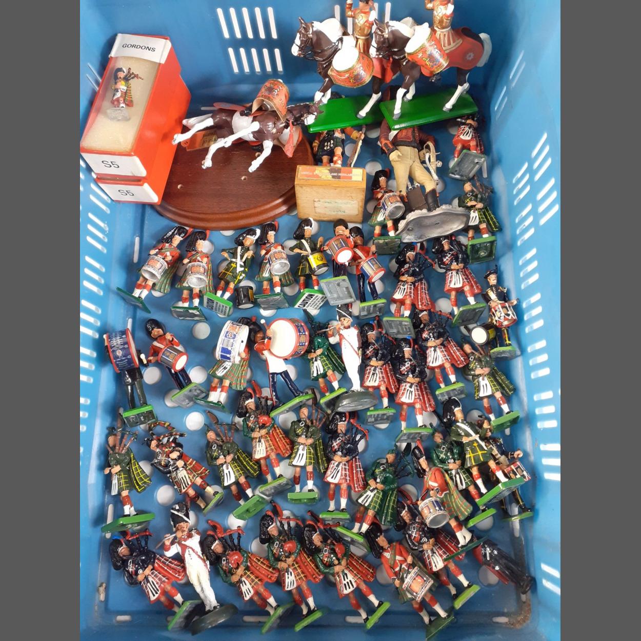 A quantity of mainly loose 'Lead’ figures, mainly Britains metal base Scottish Bandsmen, pipers etc. A few loose drums etc. but condition overall is good.