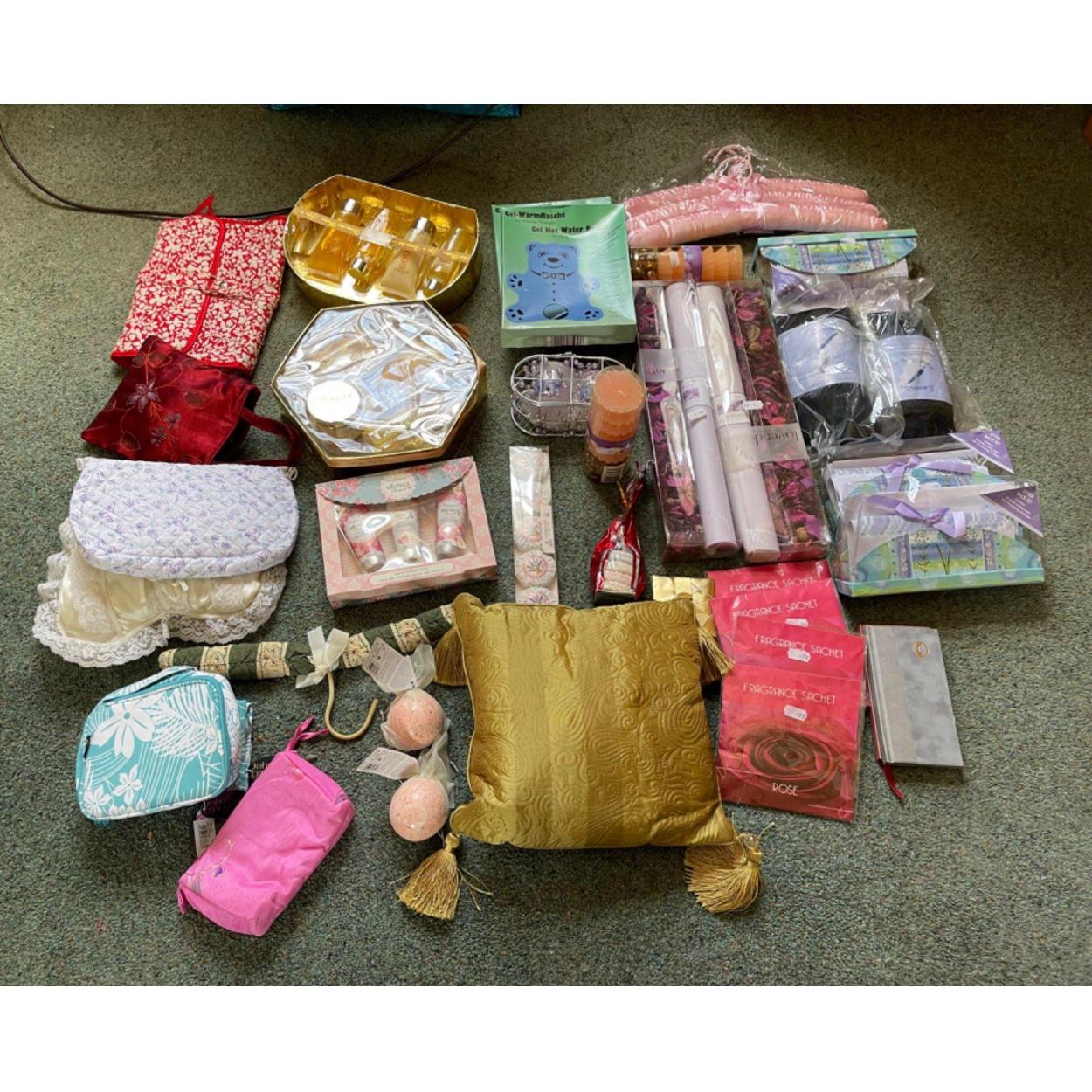 BRAND NEW and unused toiletry packs, candles, letter writing packs and so much more!