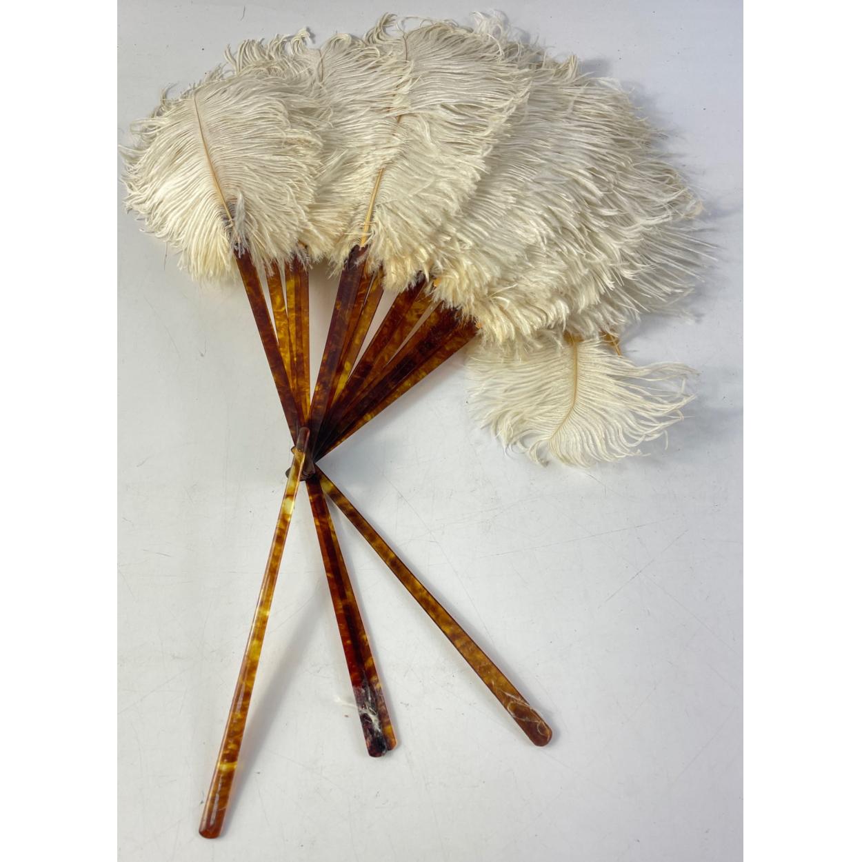 A vintage white ostrich feather fan approx 26cm long