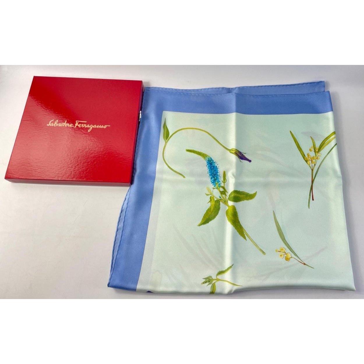 A beautiful SALVATORE FERRAGAMO Silk Scarf in original box. A lovely floral pattern. Measures 86cm square approx. In good well stored condition with no rips, tears or pulls.