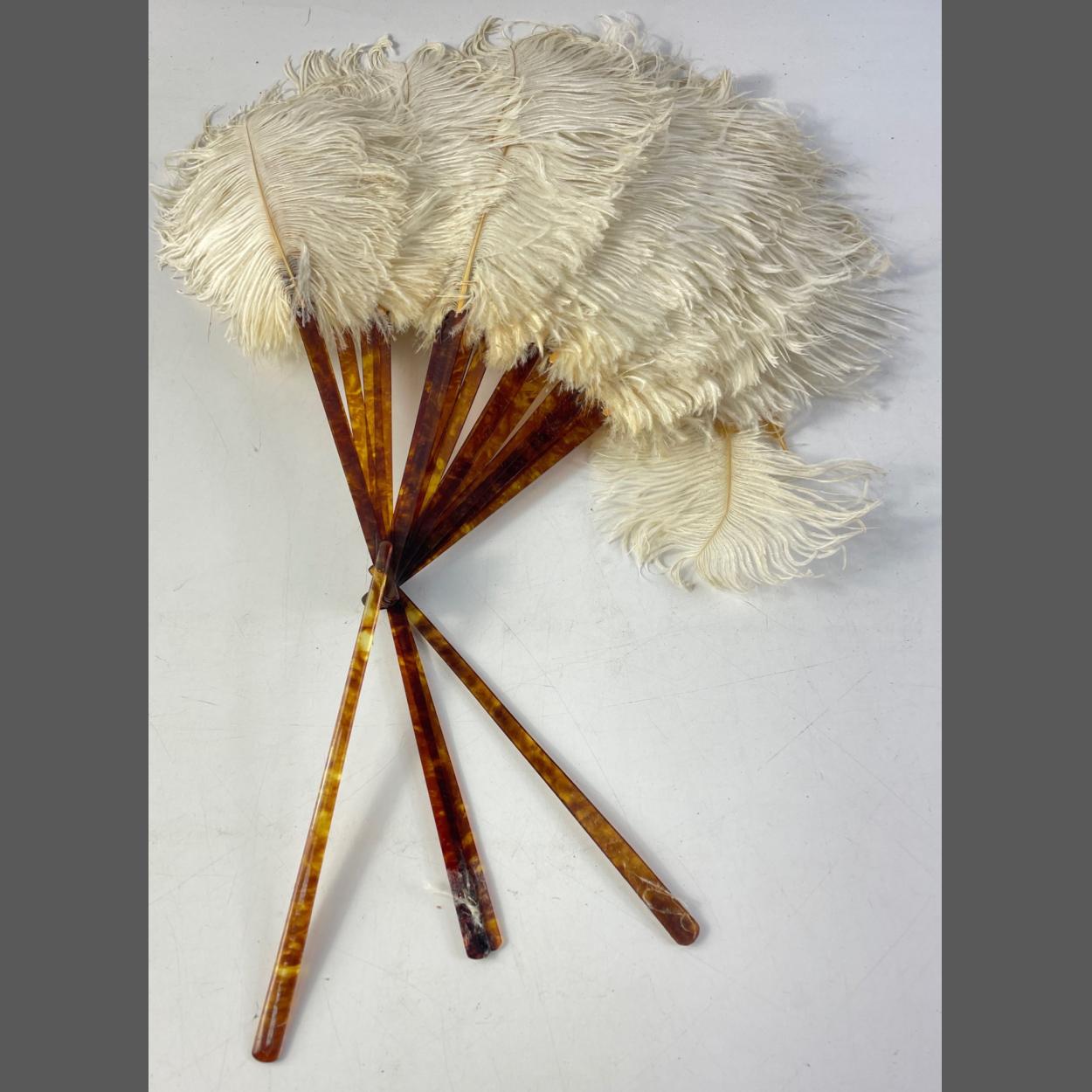 A vintage white ostrich feather fan approx 26cm long
