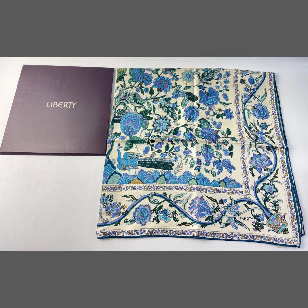 A rather lovely LIBERTY Silk Head square / Scarf in original box. A lovely blue flora and fauna pattern. Measures 86cm square approx. In good well stored condition with no rips, tears or pulls