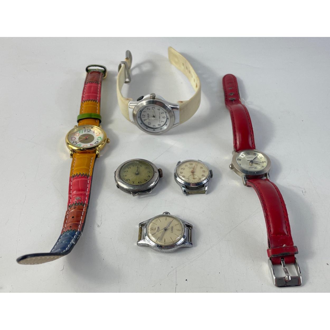 A collection of six ladies watches including by LORUS, also one strapless stamped 925