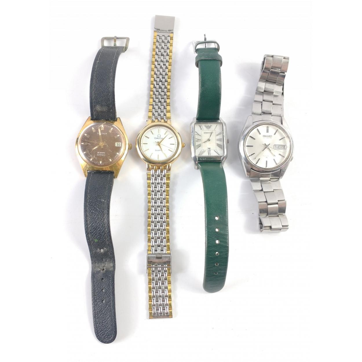 A collection of four worn wrist watches