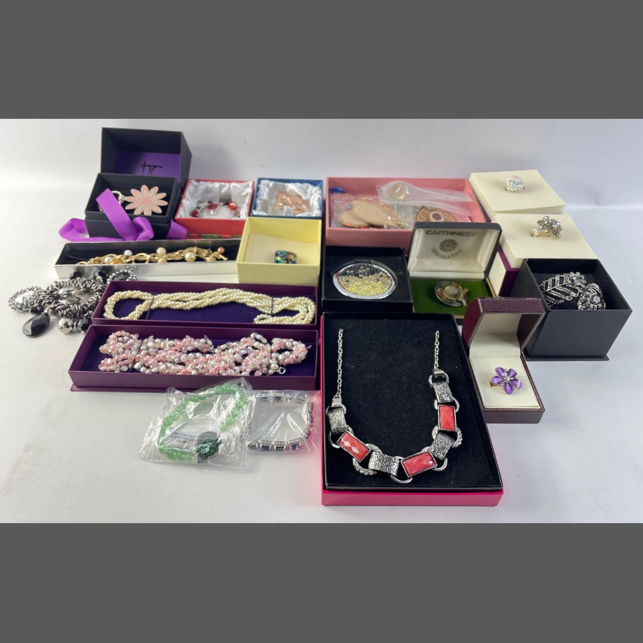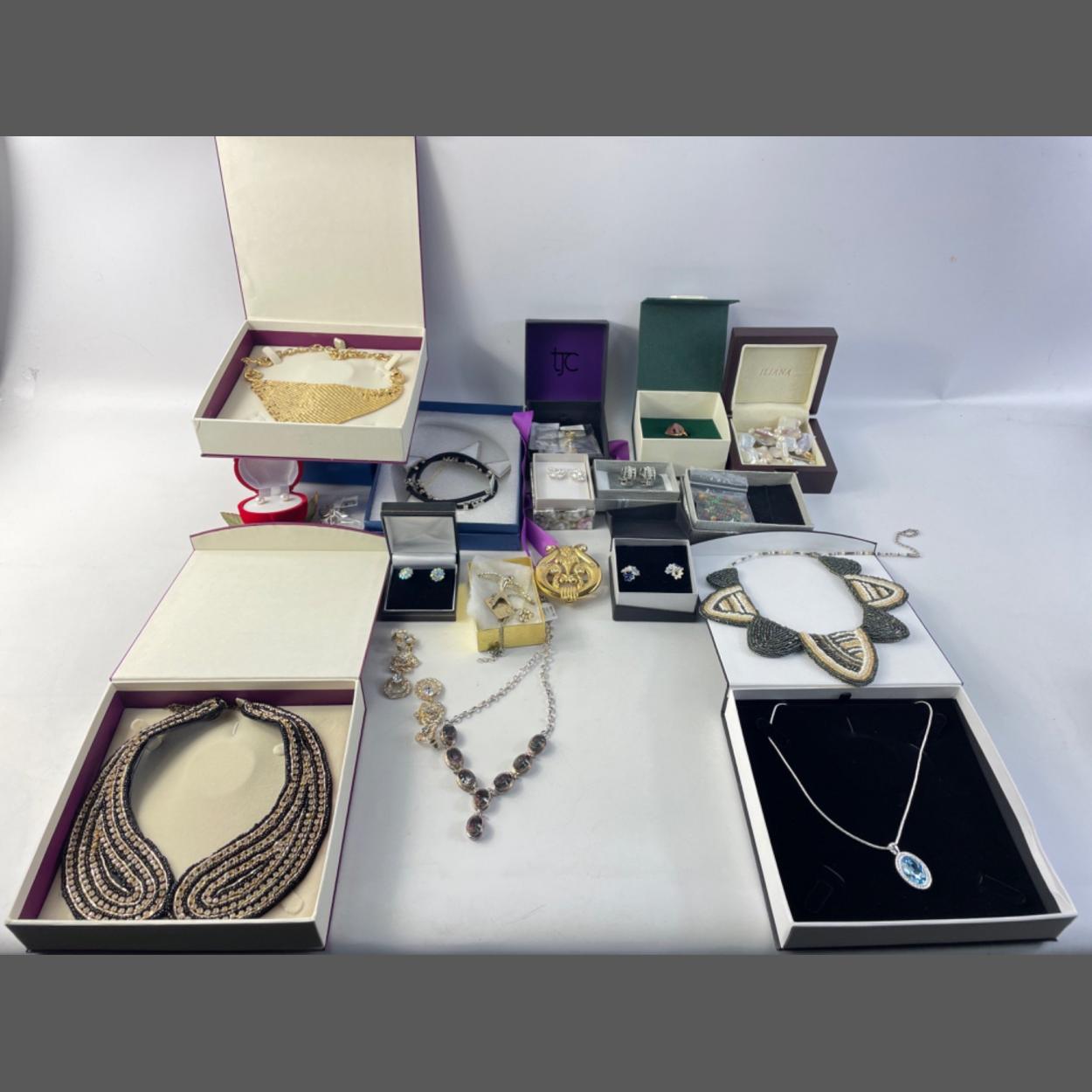 A mixed lot of jewellery from TJC, all unused and mostly in original packaging, to include heavily bejewelled bracelets, necklaces etc plus boxed statement piece necklaces, earrings,