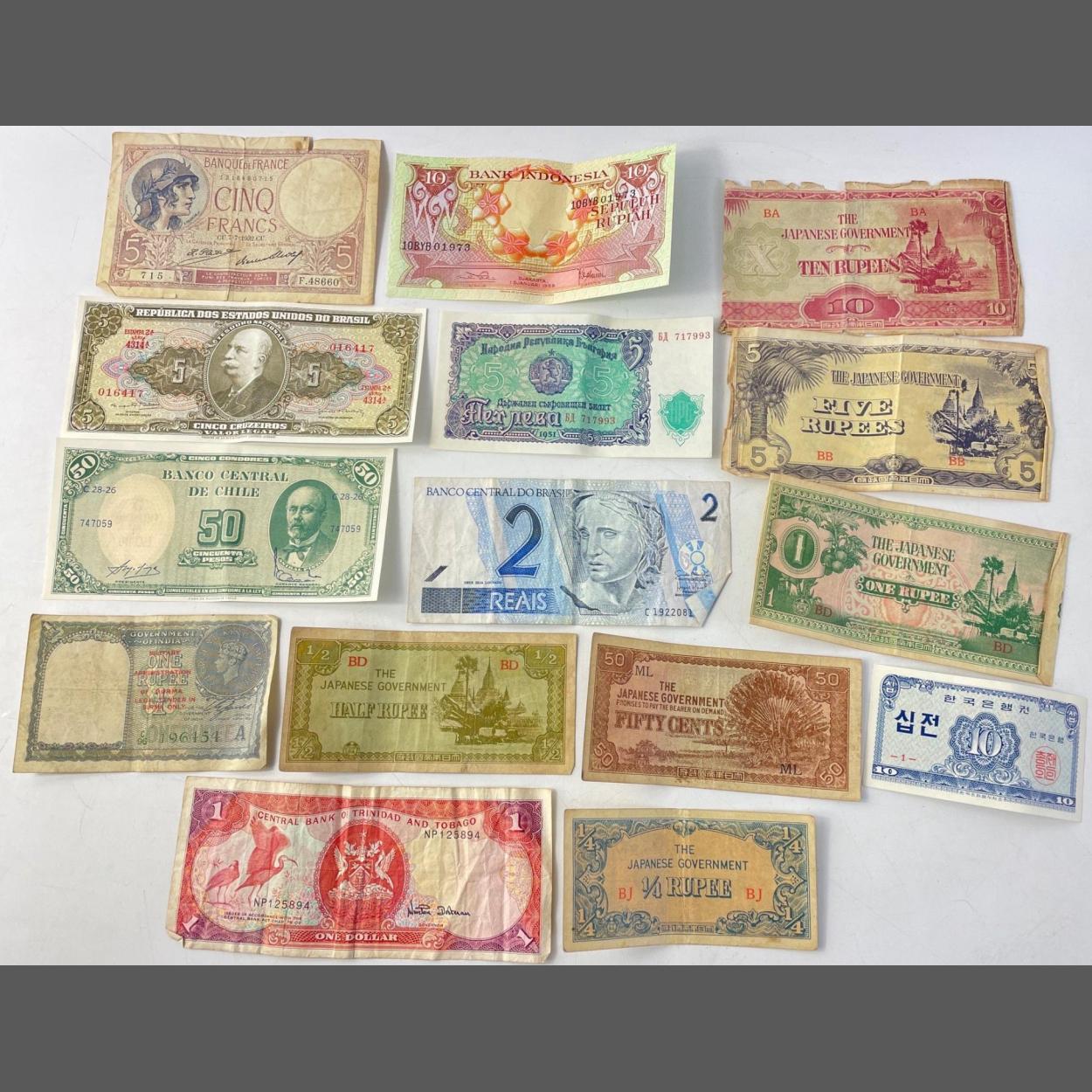 A quantity of older banknotes of interest to include some Japanese government war time occupation notes. Mixed condition, all circulated.