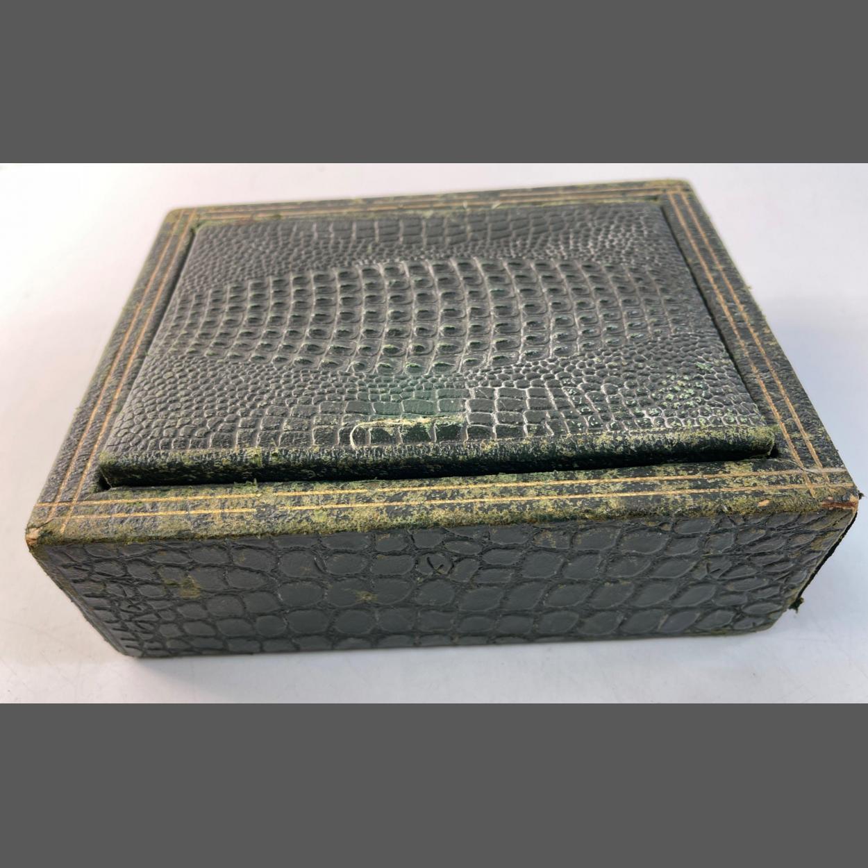 A VINTAGE c1930's GREEN CROCODILE jewellery box - the lid requires repairing and attaching of the skin hinge - but a beautiful vintage item! Dimensions 18cm x 14cm x6cm depth approx