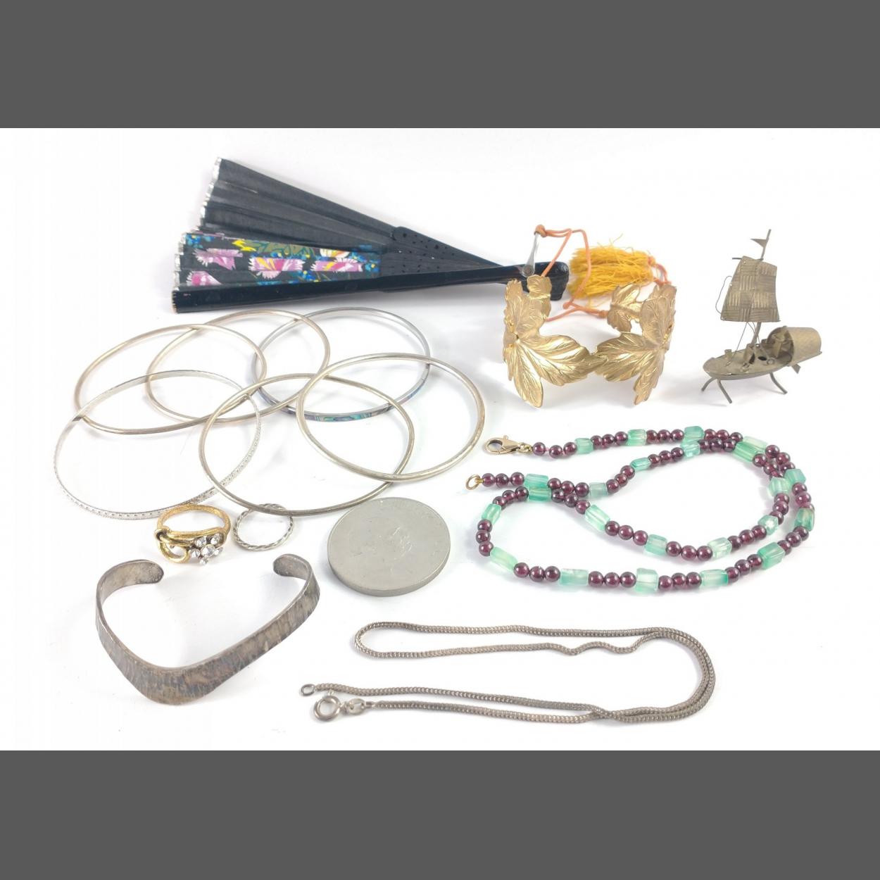 An assortment of nice quality jewellery to include bangles, a bracelet and a nice small fan etc