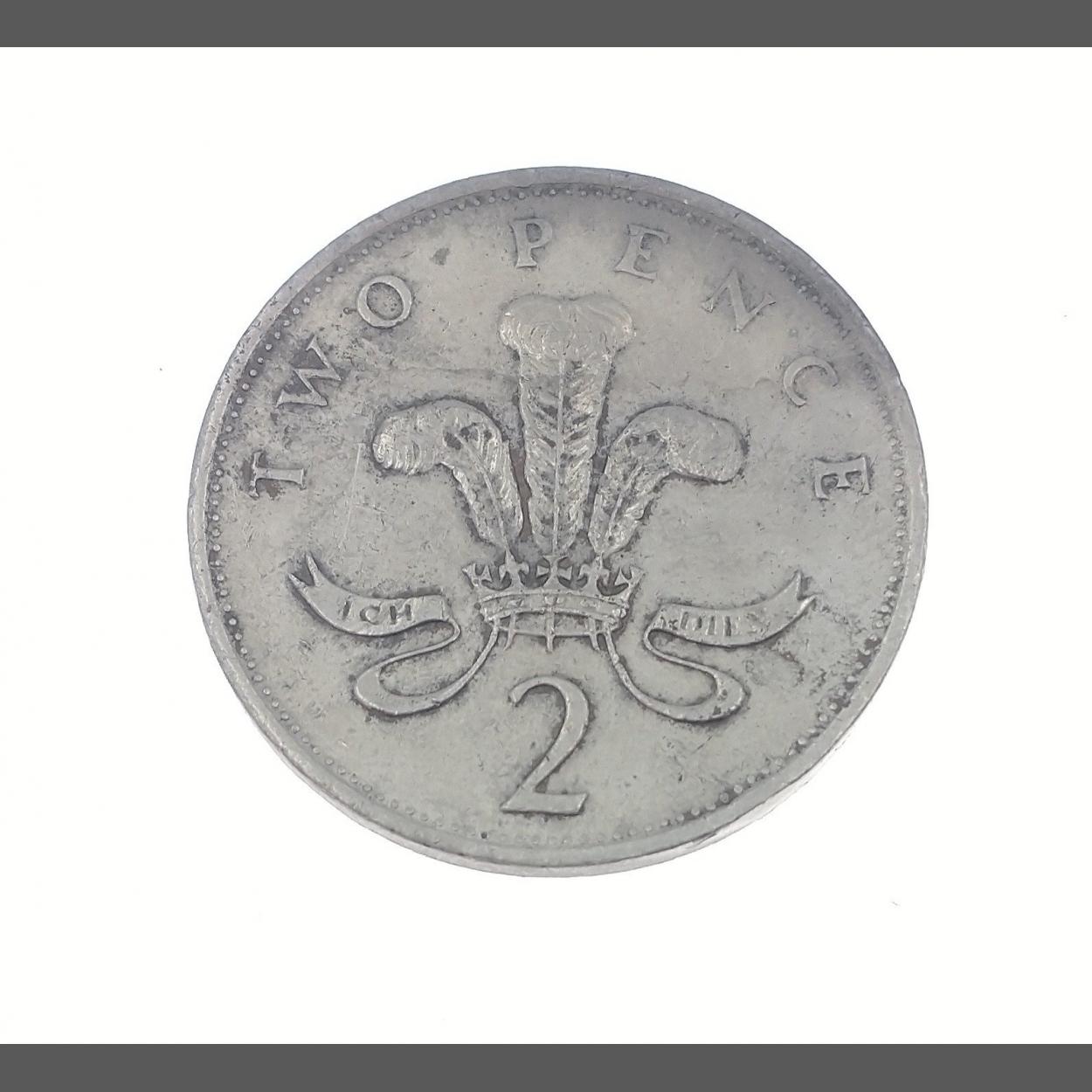 A silvered 1990 UNITED KINGDOM 2 Pence coin. With light wear and patina. Unusual piece for the enthusiast.