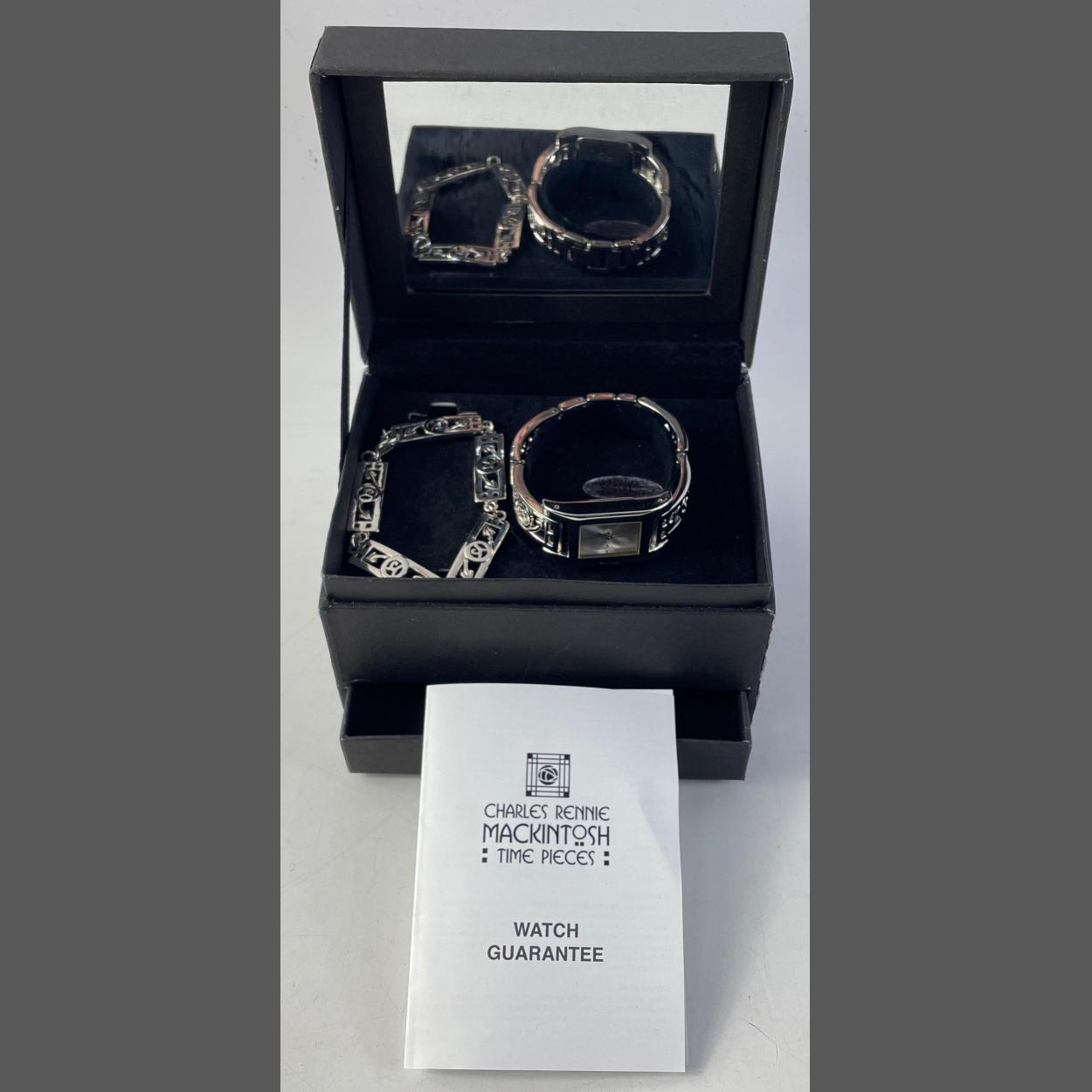 (VNS)A CHARLES RENNIE MACKINTOSH inspired boxed white metal wrist watch with bracelet