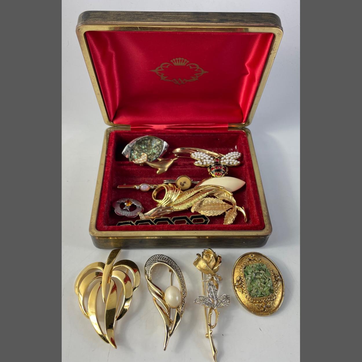 Super lot of wonderful good quality costume jewellery in an older box. By Napier, Bouher, Sarah Coventry, Monet, Exquisite, Mizpah, Michelle Lynn and others. Some particularly attractive pieces.