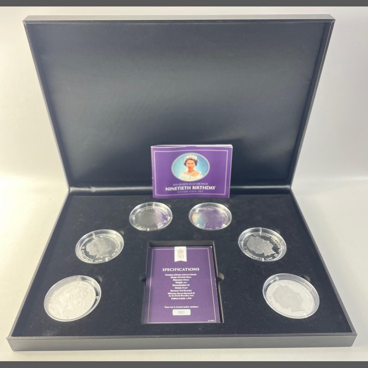 A Queen Elizabeth ninetieth birthday silver proof six coin collection - all within its original large presentation case and original booklet