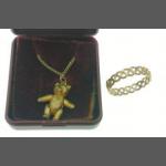A lovely wee articulated teddy bear pendant 2cm long on a 44cm long chain and a ring size P