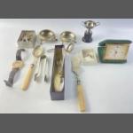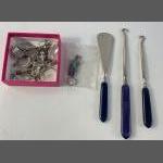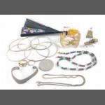 A small collection of jewellery, some silver, plus a set of 2 button hooks and a shoe horn