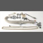 An interesting bijouterie lot to include a middle eastern Jambiya style steel dagger in sheath and trinkets.