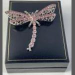 (VNS)A PRETTY bling Dragonfly brooch in white metal with pink stones - dimensions 6cm length x 5cm wing-span approx