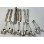 Silver plated cutlery to include a set of 6 dessert spoons, a boxed set of 6 dessert knives and forks, and a boxed set of 6 teaspoons