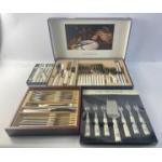 A collection of 3 canteens of CUTLERY with also a small box of vintage MUTUAL branded cutlery stainless steel pearl handed inspired butter knife set of 6