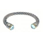 A twisted silver bangle stamped 925 with 2 blue stones, diameter approx 7cm, gross weight 25.4g