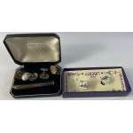 A pair of silver cufflinks with indistinct hallmark (9.35 g approx) plus a tie pin - 9ct gold on silver and a pair of cufflinks by SONIA SPENCER for LIBERTY