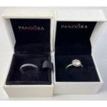 A pair of lovely PANDORA Silver 925 stamped rings in original boxes. Love heart band and a pretty glitzy stone that looks like a million dollars. Both size K.