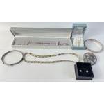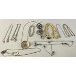 A nice little collection of silver jewellery to include necklaces, bangles and a rather pretty brooch. 50g approx total gross weight