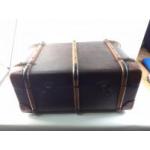 A large wood banded travel trunk in good useable order. Measures 85cm x 49cm x 30cm approx.
