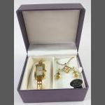 A boxed SPIRIT OF CHARLES RENNIE MACKINTOSH watch with a pendant necklace and matching earrings (RRP £50.00)