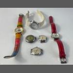 A collection of four worn wrist watches