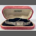 An Art Deco ladies 925 import stamped cocktail watch set with multiple clear stones, nicely presented in a JENNER'S box