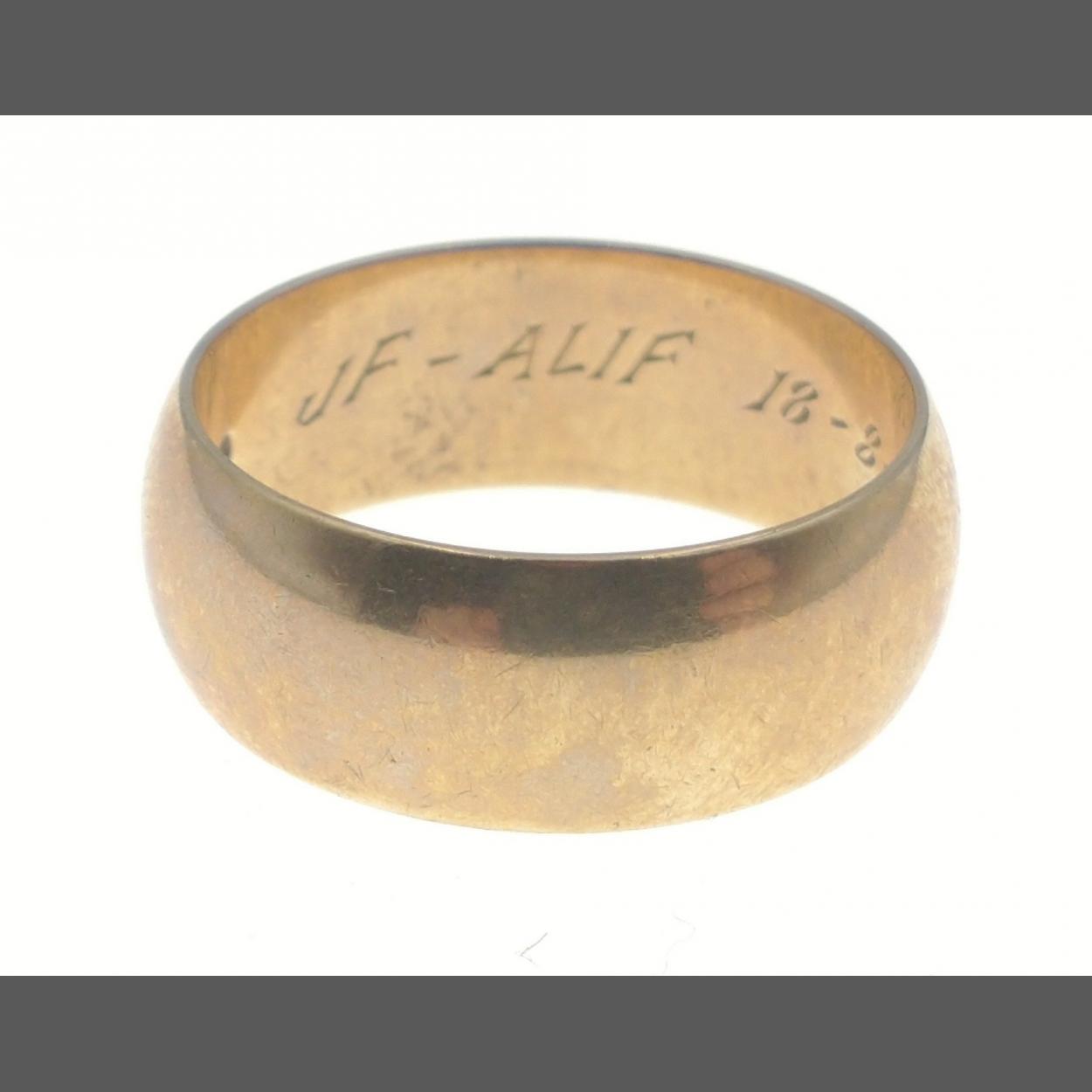 A 375 stamped gents 9ct gold wedding band / ring with internal 1967 inscription. Size Q, weight 6g approx.