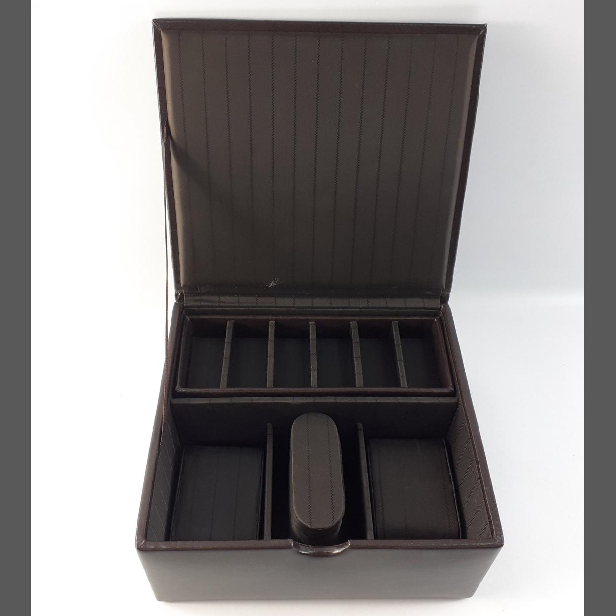 A smart brown leather JOHN ROCHA jewellery box 20x18x10cm approx. Small knock on one corner