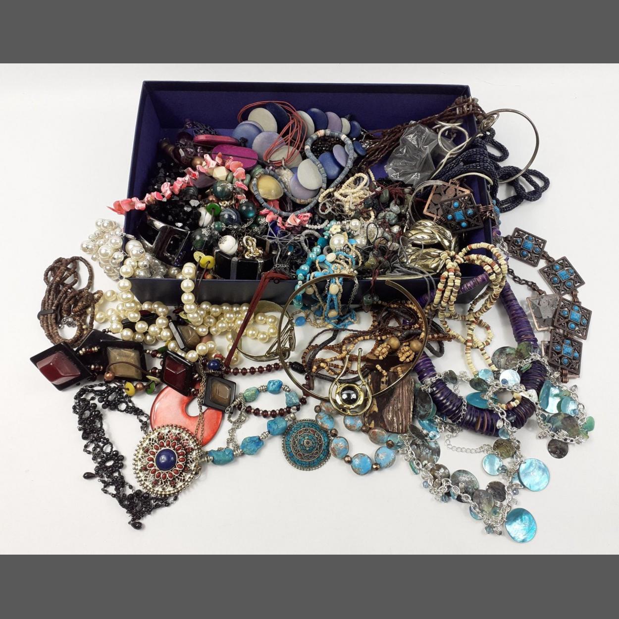 A mixed lot of costume jewellery to include bangles, necklaces and brooches